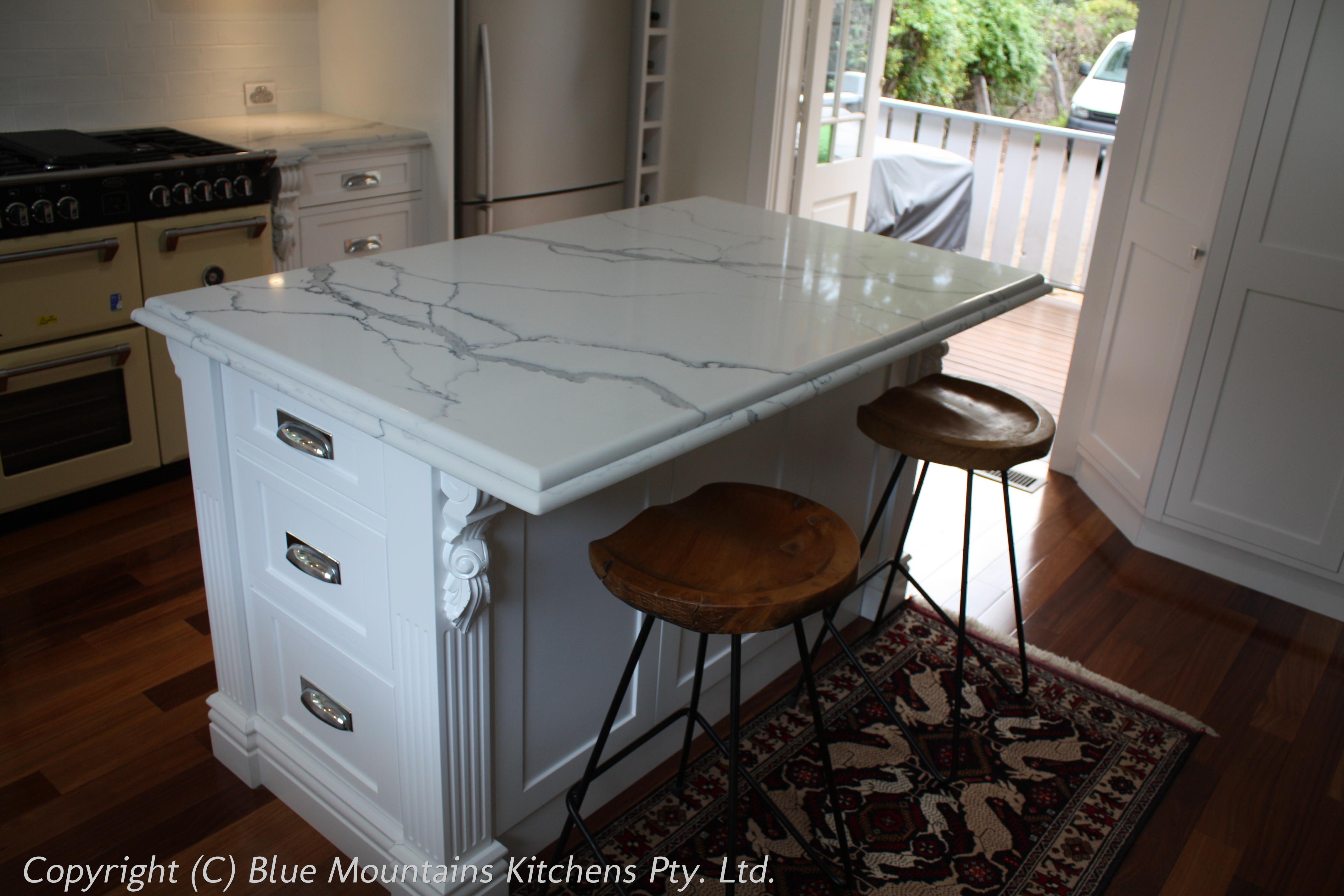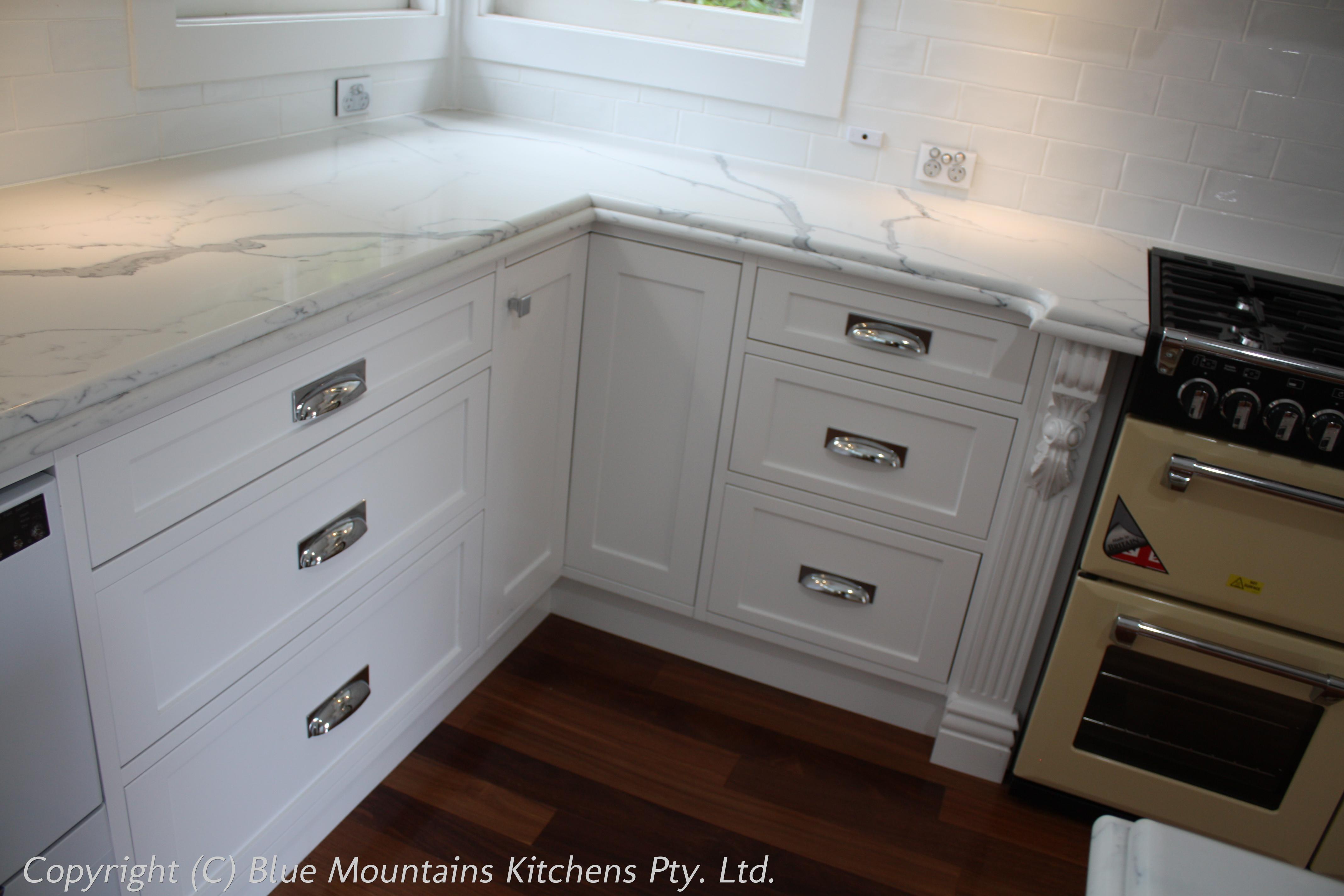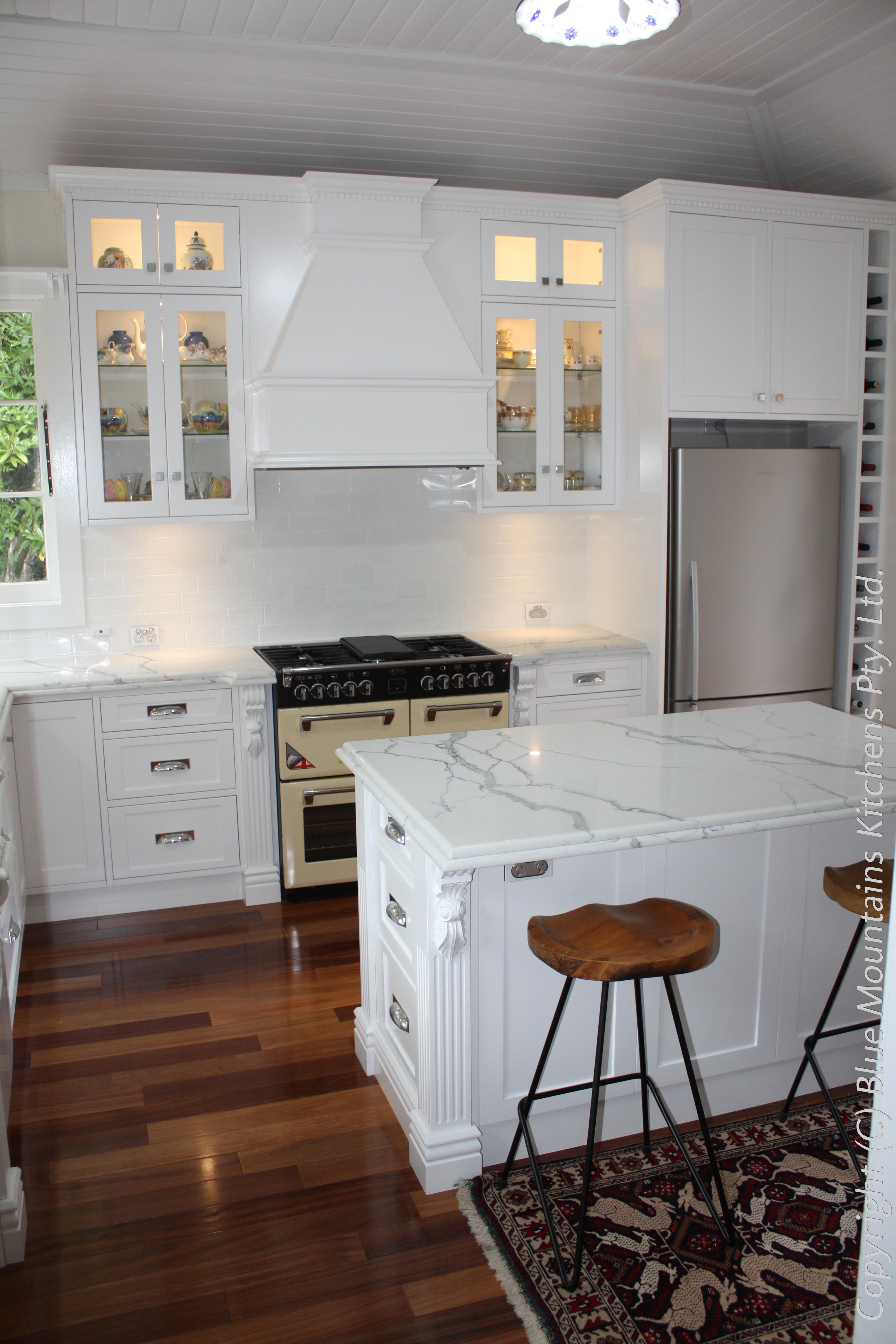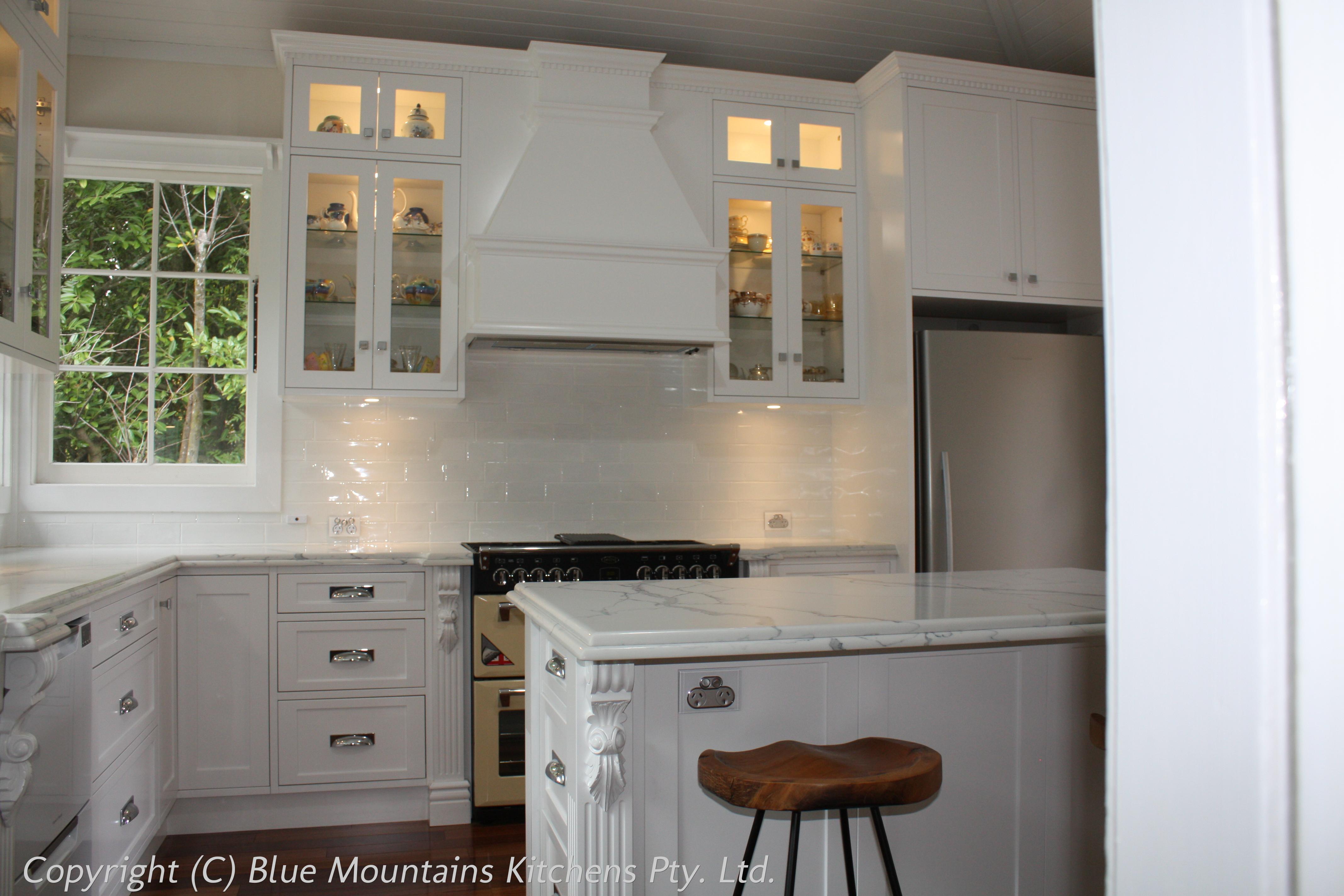This highly detailed kitchen was inspired by classic Hamptons Style. 40mm double bullnose tops, ornate capping mould with dental capping, 25mm drawer and door surrounds, decorative corbels the list goes on...